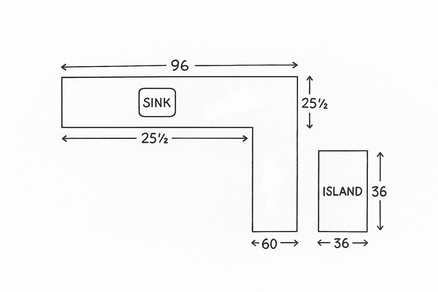 Draw the shape of your kitchen or bathroom counters from a top-down view. Don’t worry if it’s not perfect— it’s just a rough outline.
